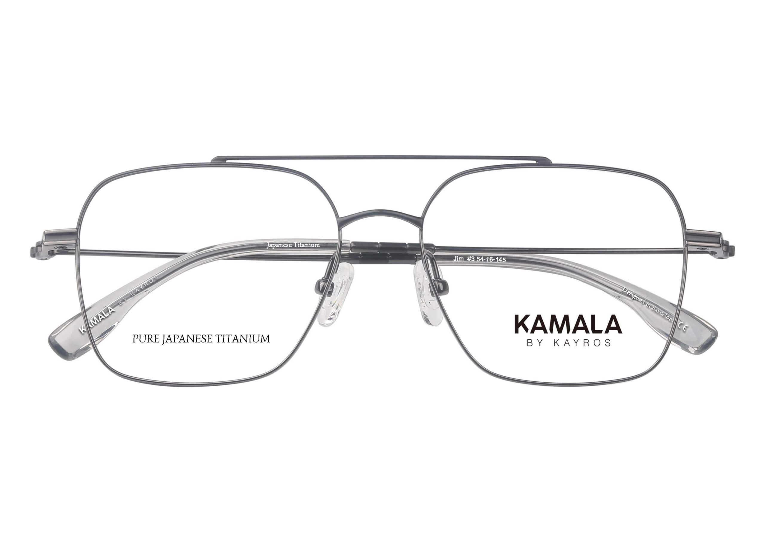 El modelo JIM es una montura para mujer hecha en titanio puro japonés y elaborada de manera artesanal. La montura dispone tiene un estilo retro – juvenil con forma rectangular y doble puente