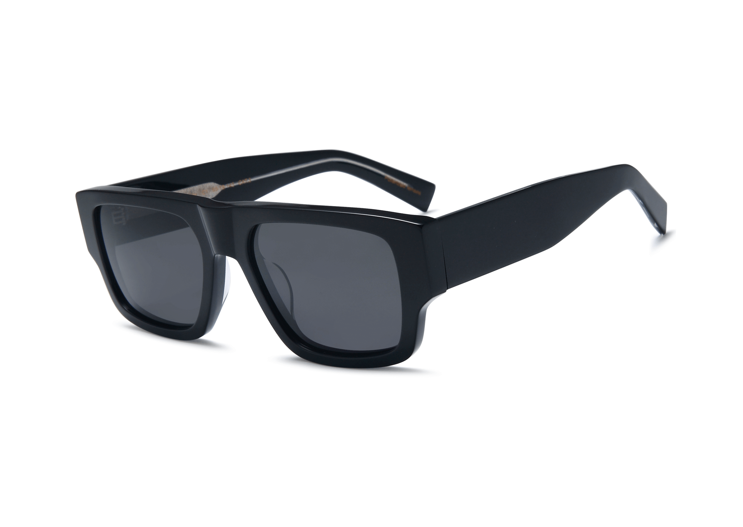 El modelo TROY es una gafa de sol de estilo retro en forma rectangular hecha a mano con acabados de alta gama. Lente Polarizada, protección 100% UV.
